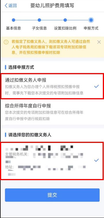 如果纳税人需要在每月发放工资薪金时享受专项附加扣除,需要选择“通过扣缴义务人申报”,并核实扣缴义务人信息是否准确。