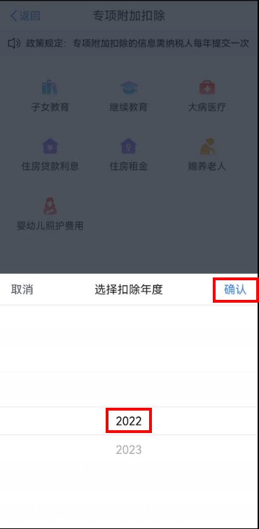 进入申报界面后,“选择扣除年度”设为2022年,点击“确认”后,系统会提示需要提前准备的资料,纳税人仔细阅读后,点击“准备完毕,进入填报”。