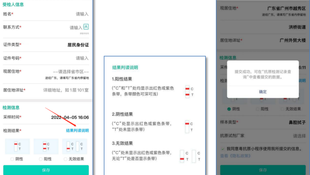 粤抗原与粤健通、粤核酸小程序、电子健康码等进行连接,用于支持居民开展个人自测和医疗卫生机构开展抗原检测的受检人信息采集和检测结果上报。