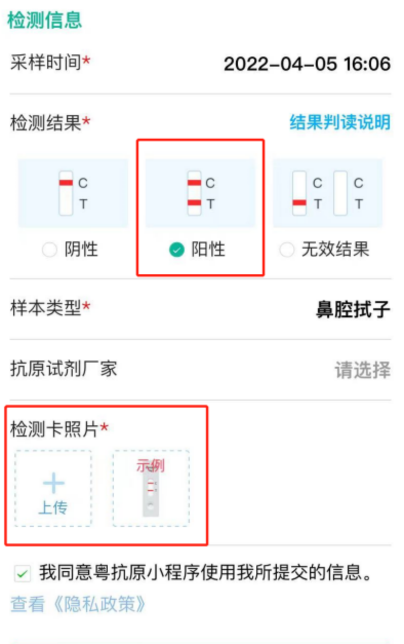 注意:若抗原检测结果为阳性需上传检测卡照片