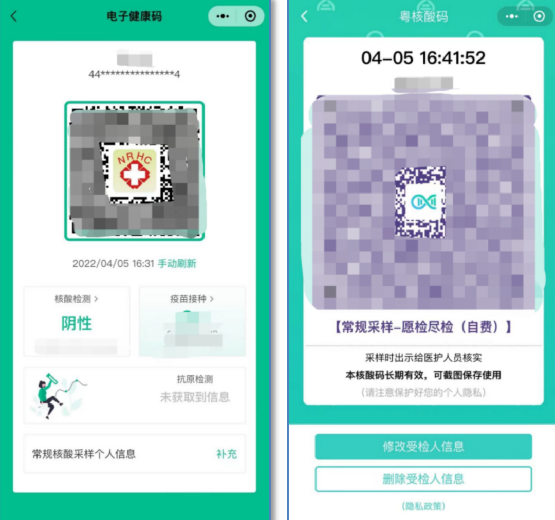 第二步:出示 “电子健康码”或“粤核酸码”供医护人员扫码登记