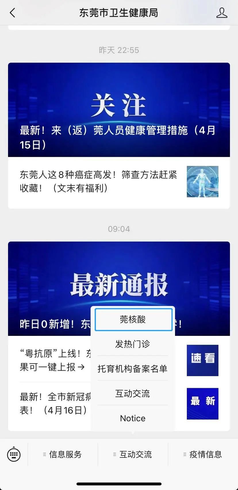 查询方法一:“东莞市卫生健康局”微信公众号