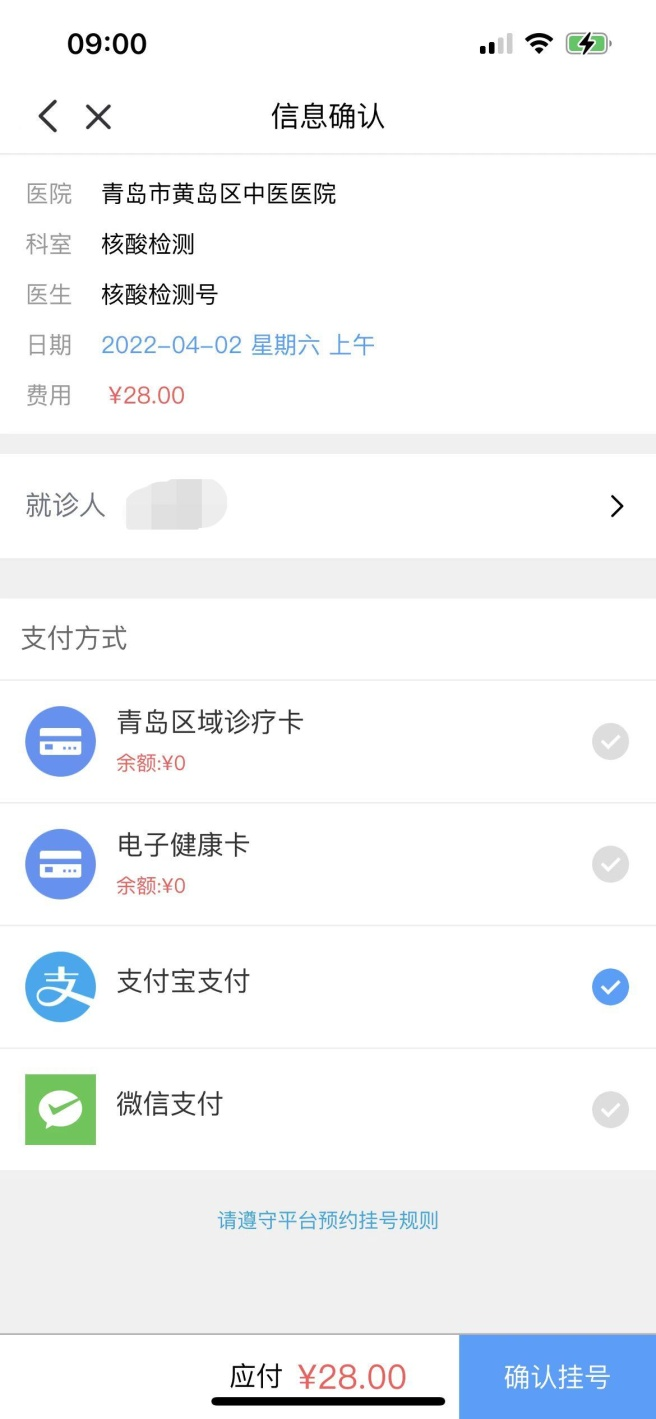 第3步:按提示进行缴费,缴费完成后即挂号成功。