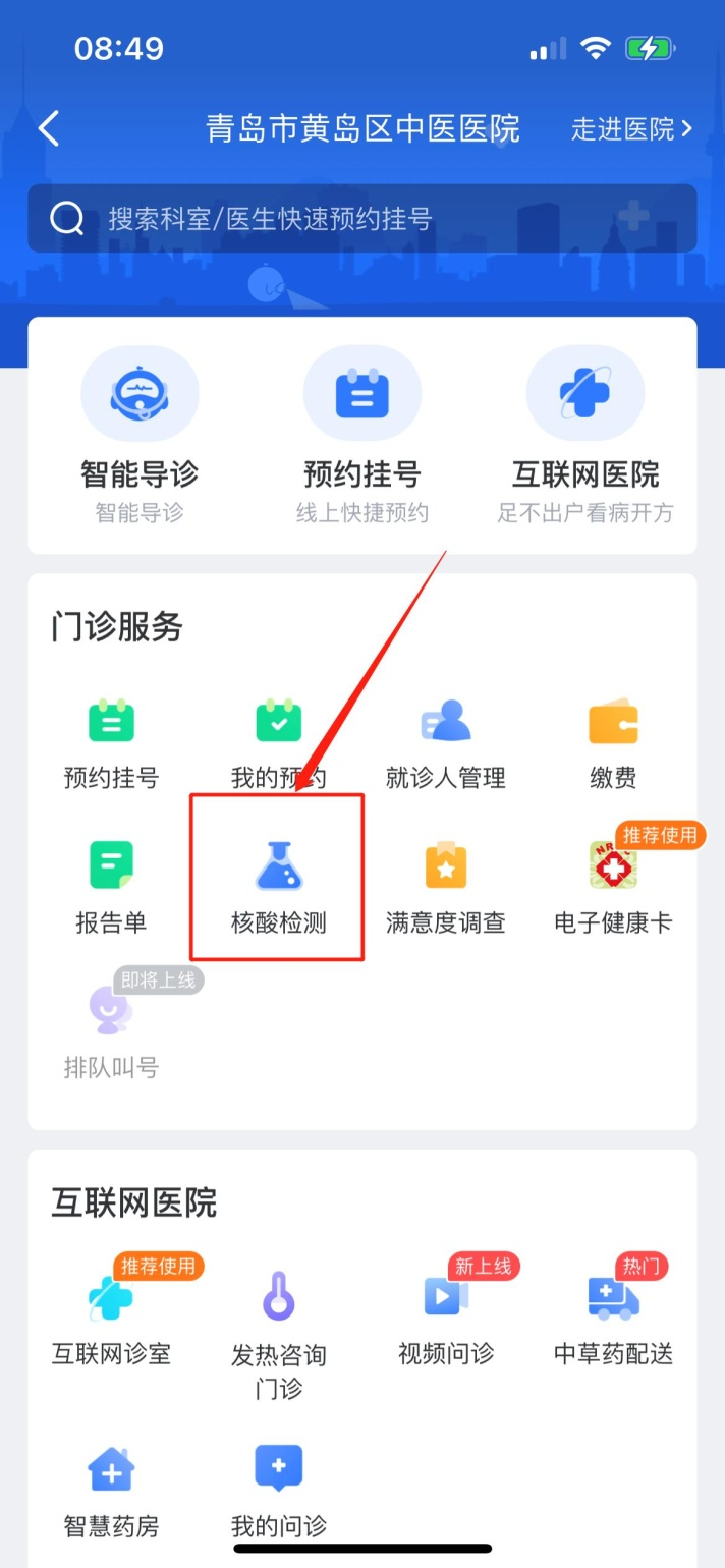 第4步:挂号成功后,您只需携带医保卡或就诊卡、电子健康码到院内核酸采集点按提示进行核酸采集即可。