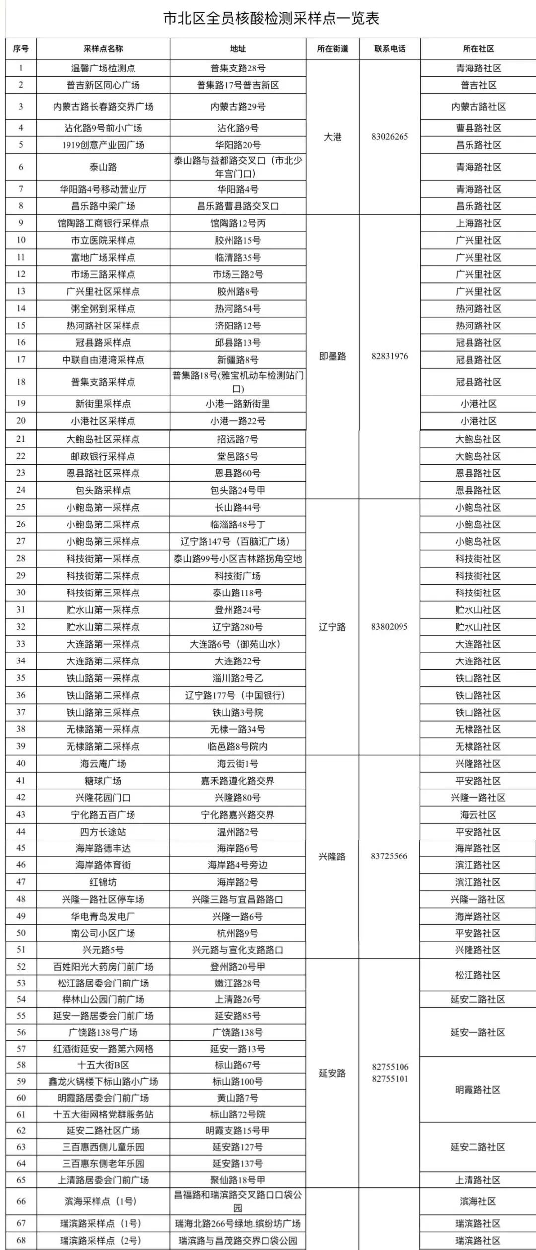 5月14日市北区核酸检测采样点一览表↓↓↓