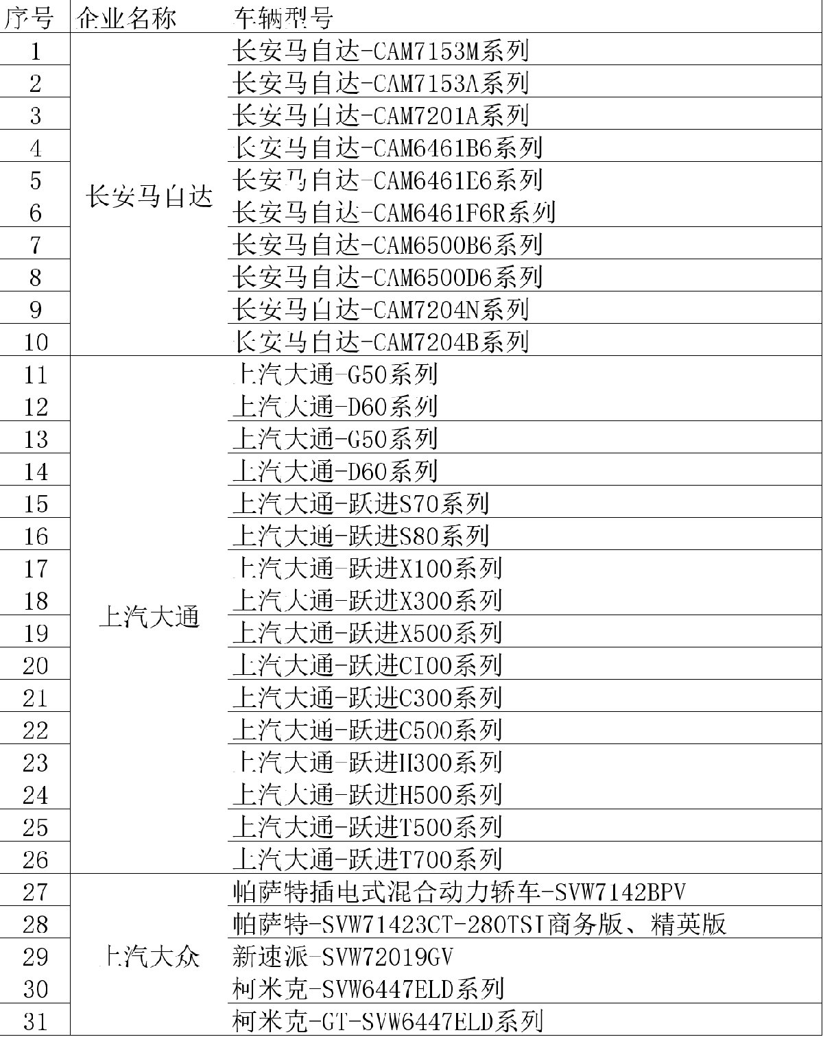 江宁区重点整车生产企业车型清单: