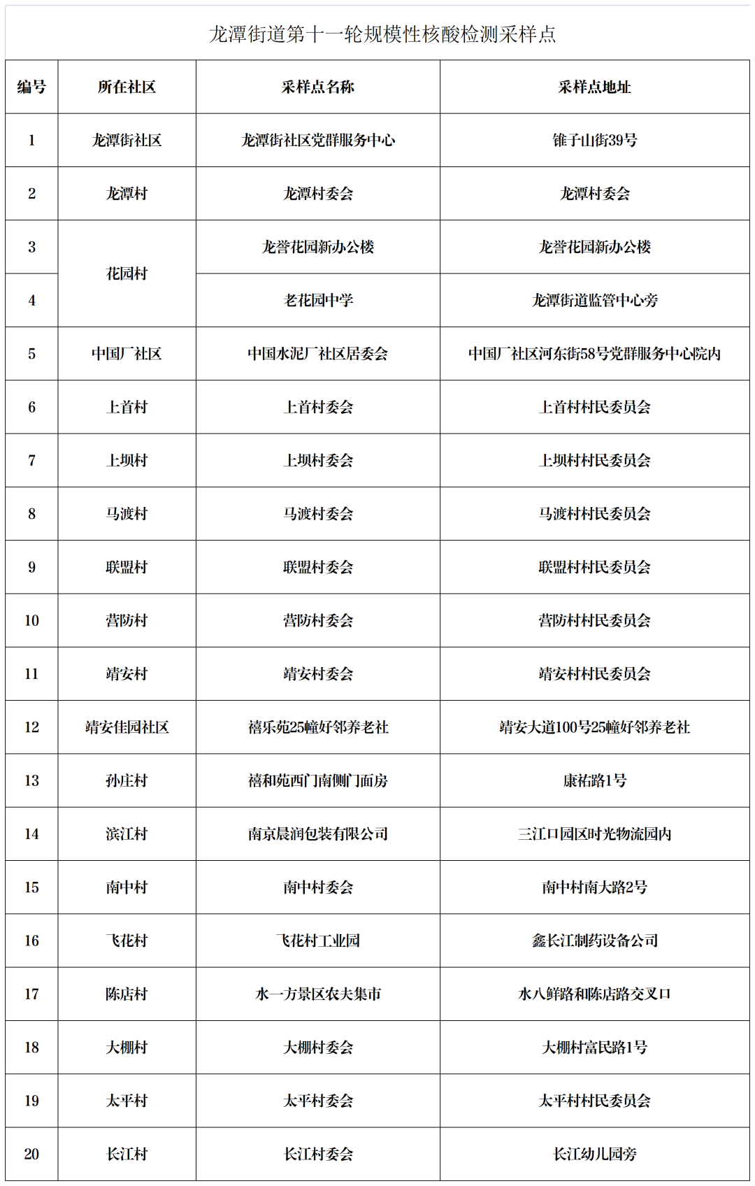 为切实筑牢疫情防控屏障,按照栖霞区新冠肺炎疫情防控工作指挥部统一部署,龙潭街道于2022年4月15日(星期五)开展第十一轮规模性核酸检测工作,现将有关事宜通告如下: