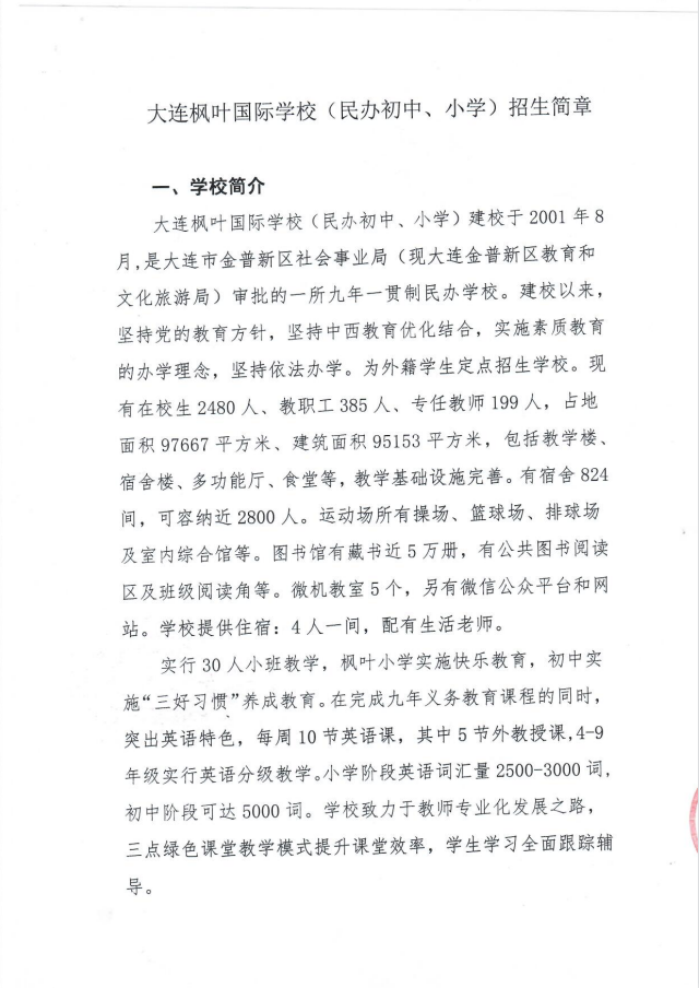 大连枫叶国际学校2022年小学、初中招生简章