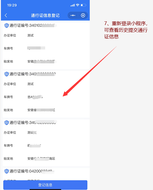 登录微信小程序;登记信息登记信息;查看并下载通行证;打印通行证。