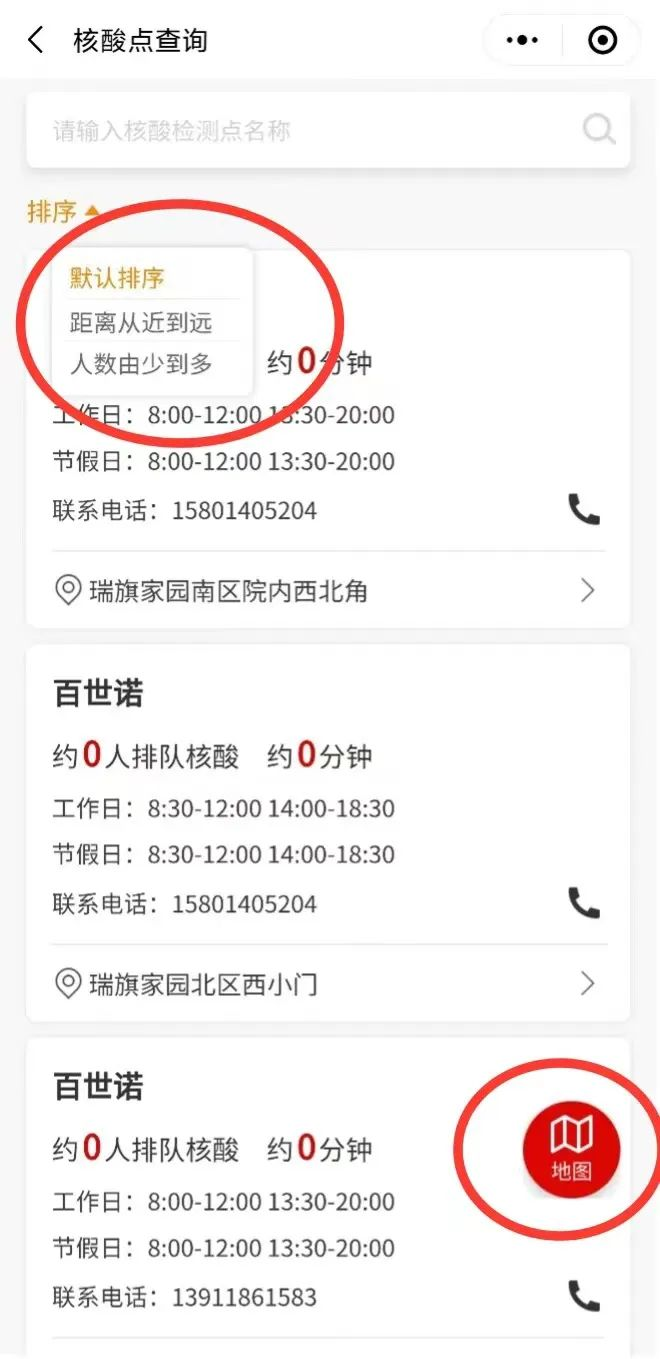 方法二:1.点击地图上其中一个“核酸检测点位”,可查看点位详细信息页面。1)点击“核酸检测点电话”直接拨打电话。