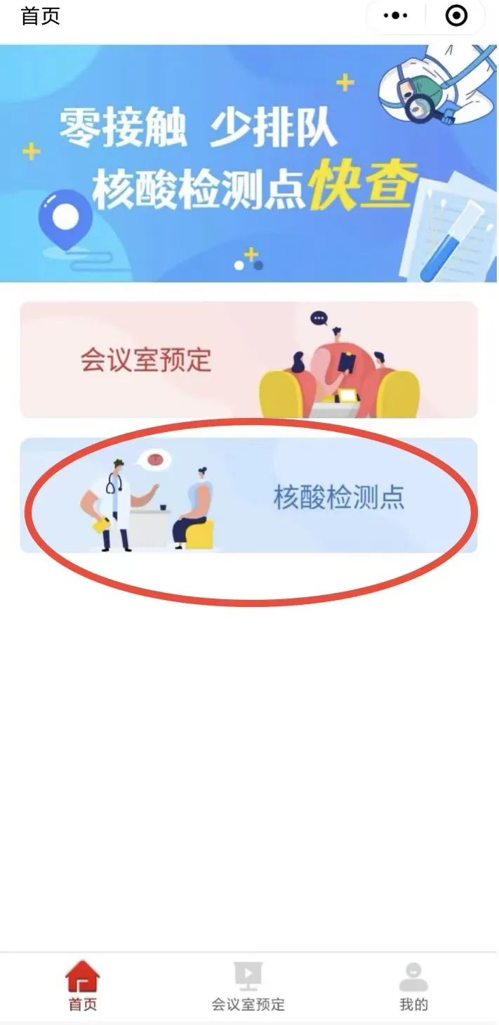 1.进入【首页】,点击“核酸检测点”功能按钮。