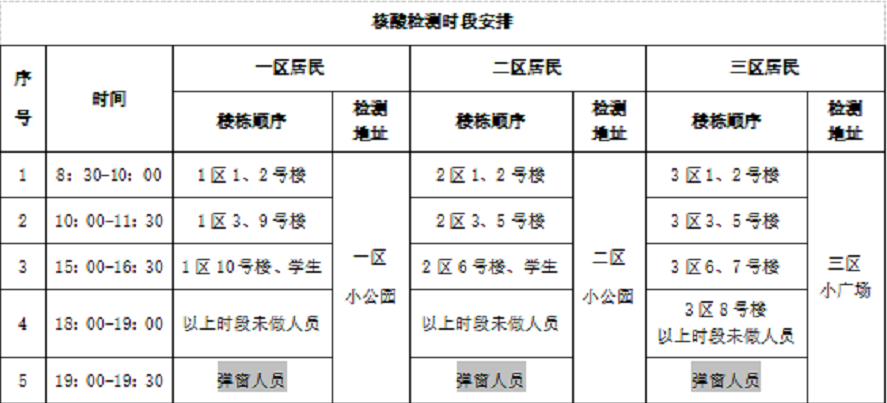 4、5月23-24日维续开展区域核酸检测,请各位居民严格按社区划定楼栋时间段下楼做核酸(见下表)