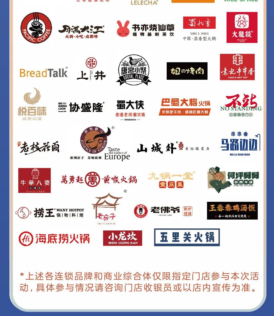 活动期间,消费券可用商户部分清单如下,具体以到店信息为准,参与活动商户持续增加中,详情请登录云闪付APP首页-成都消费券活动页面使用“可用商户查询”功能。