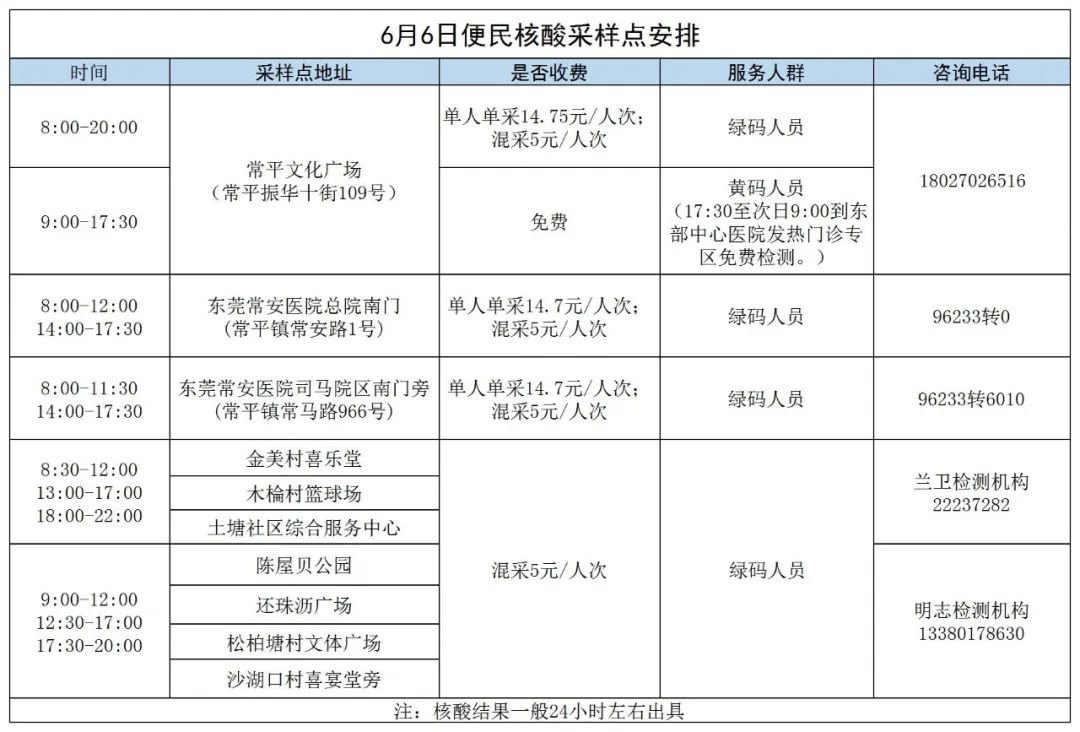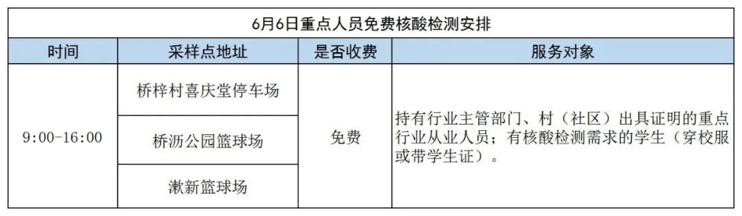 为充分发挥核酸检测的“排雷兵”作用和监测预警作用,常平镇继续开展重点人员核酸抽检工作。6月6日安排如下: