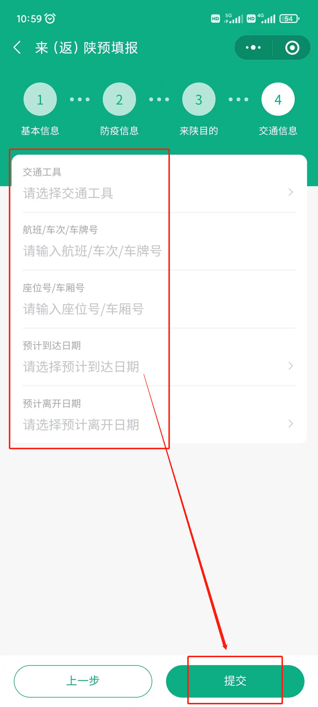7、填写交通信息后,点击提交即可。