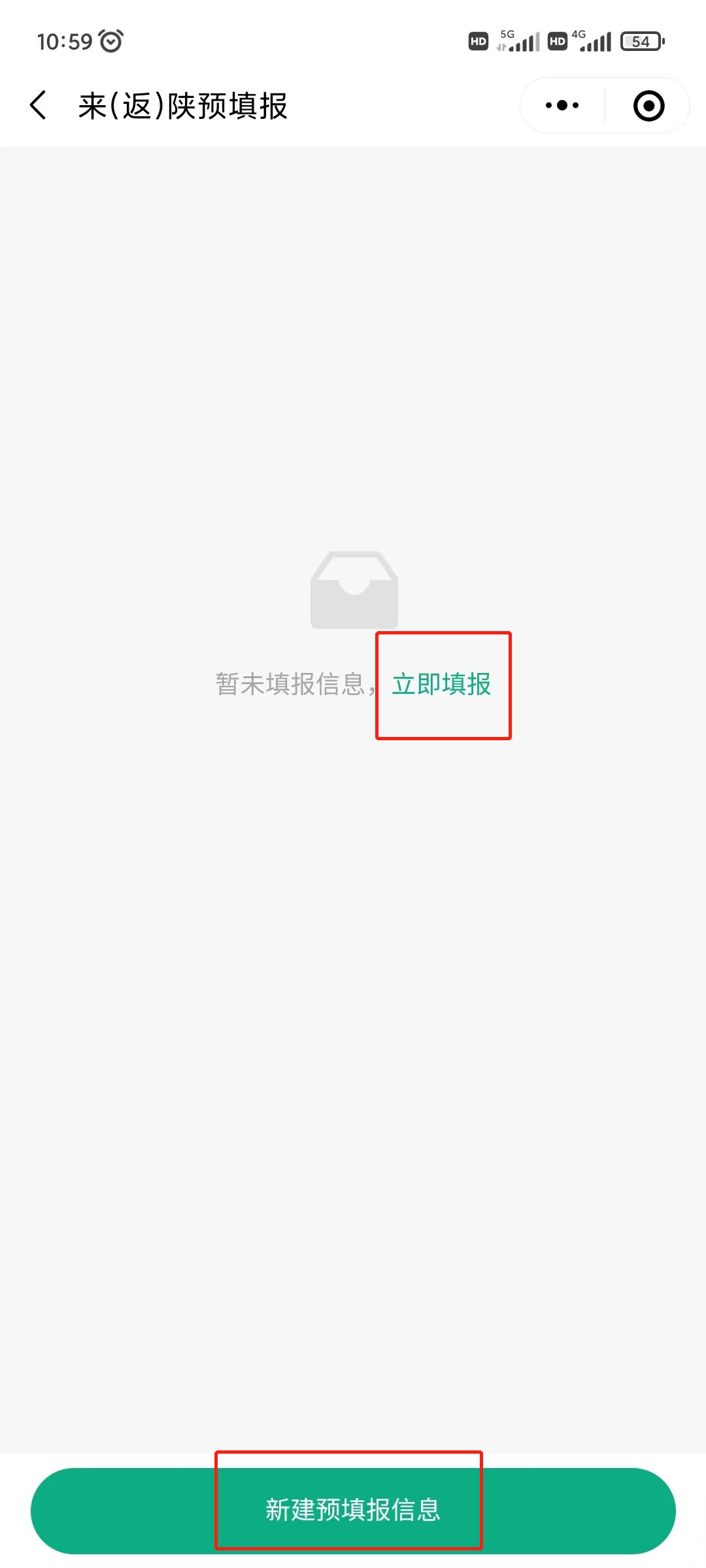 2、点击“来(返)陕预填报”;