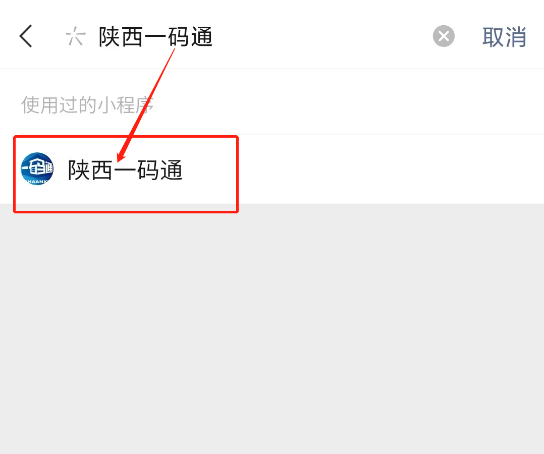 1、微信搜索“陕西一码通”小程序;