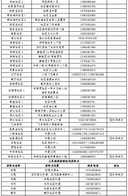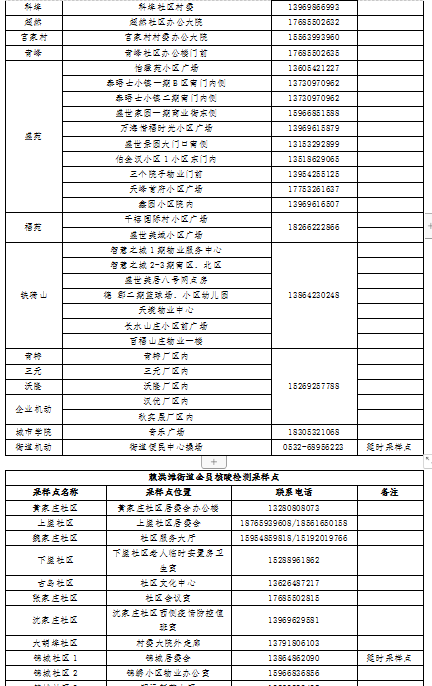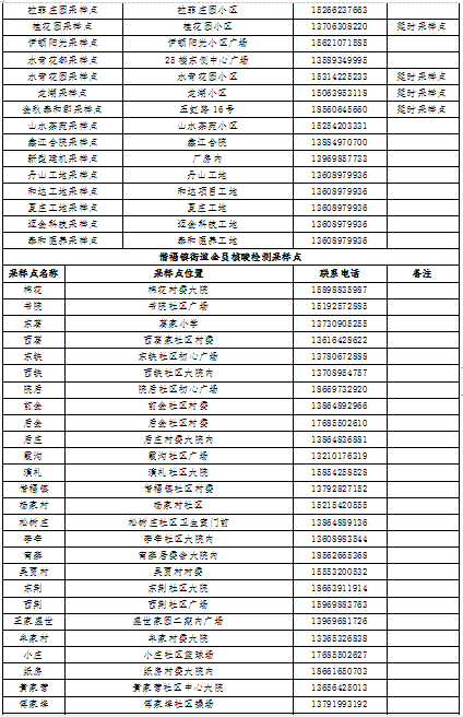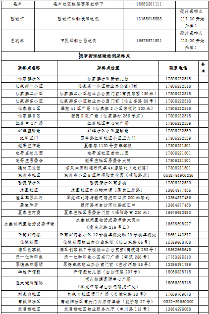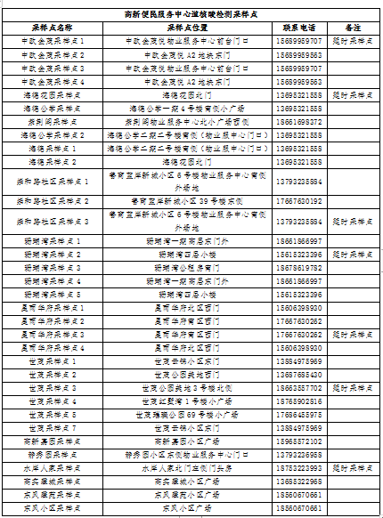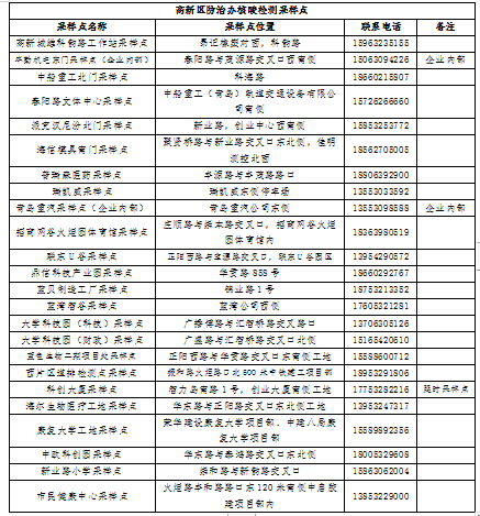 各街道、高新区防指办、高新便民服务中心就近设置采样点(采样点信息附后),请关注区及各街道、高新区防指办、高新便民服务中心发布的信息。