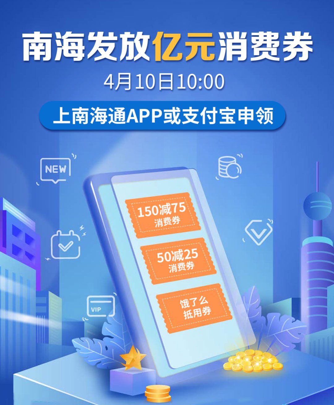 南海区将于4月10日开始发放1亿元“南海版”消费券。