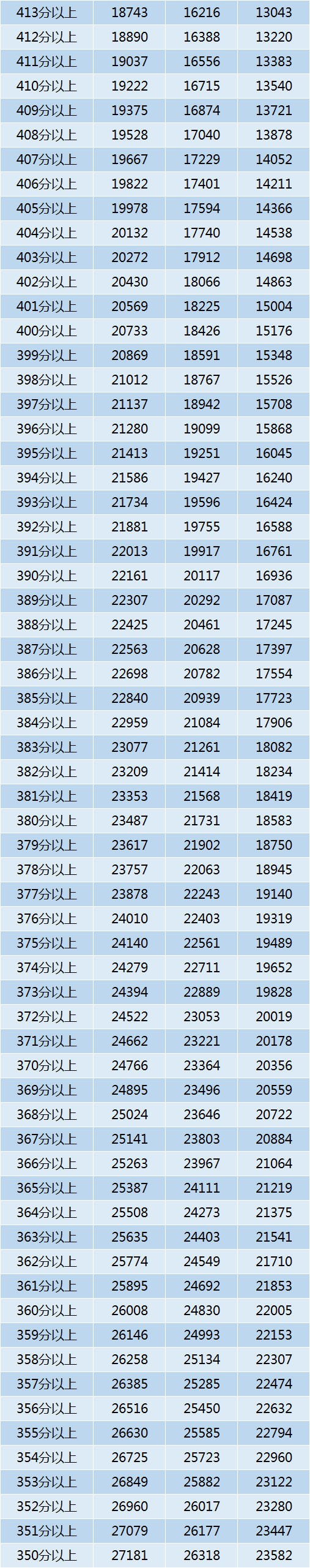 宁夏近三年高考一分一段统计表(2019-2021)