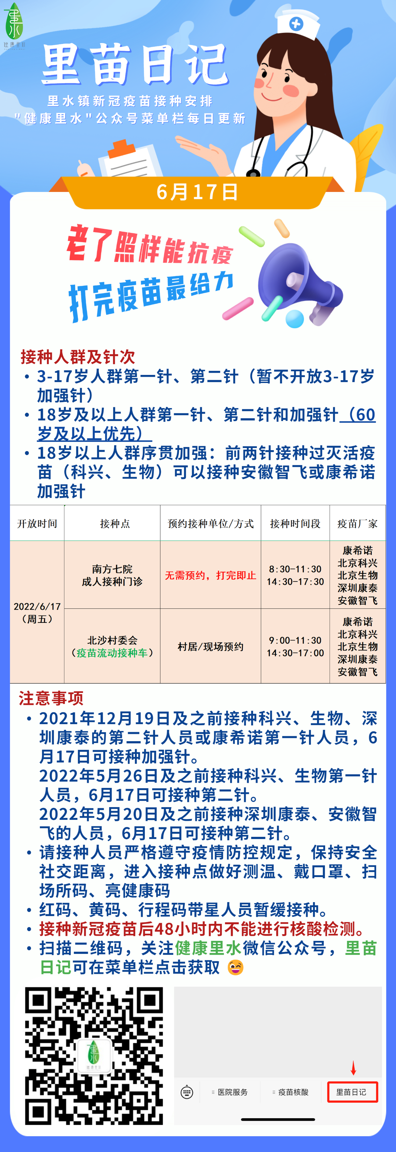 | 龙江镇 | ⭐最新苗讯:到苗情况 6月16日-6月19日(周四-周日) 接种地点:丰华社区卫生服务站。 服务时间:上午8:00-11:30,下午14:30-17:30 接种对象:18岁以上首针、二针、三针。 PS:18岁以下人群接种,需要先去各村(居)委登记预约。 |