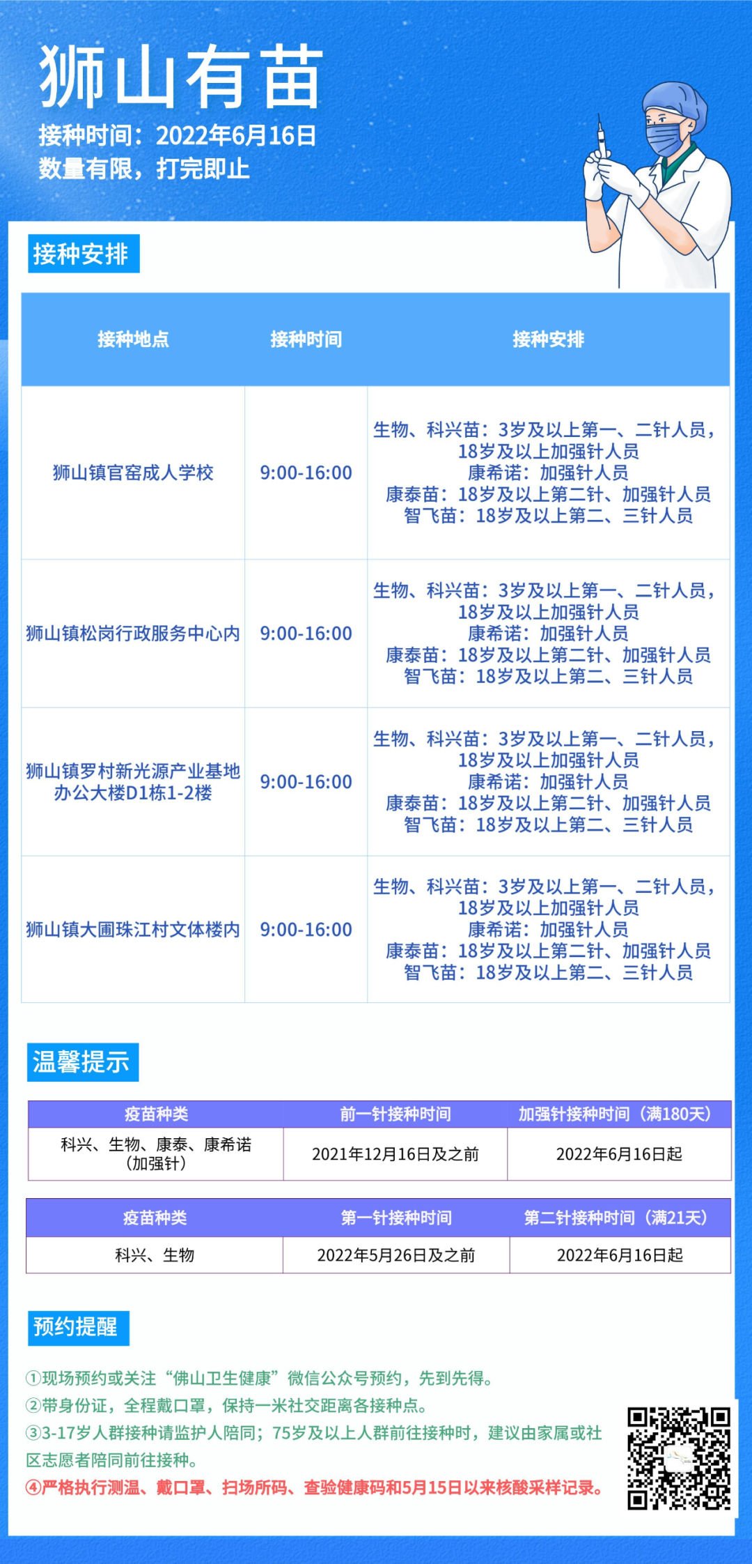 | 狮山镇 | 最新情报:2022年6月16日,狮山有苗,数量有限,打完即止。 ➱【到苗情况】|【南海新冠疫苗接种地图】 ![]() |