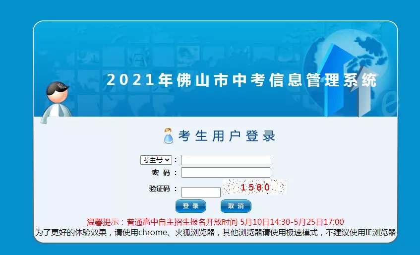 第三步:进入考生登录界面,登陆佛山招考网,考生可以使用准考证号和登录密码。