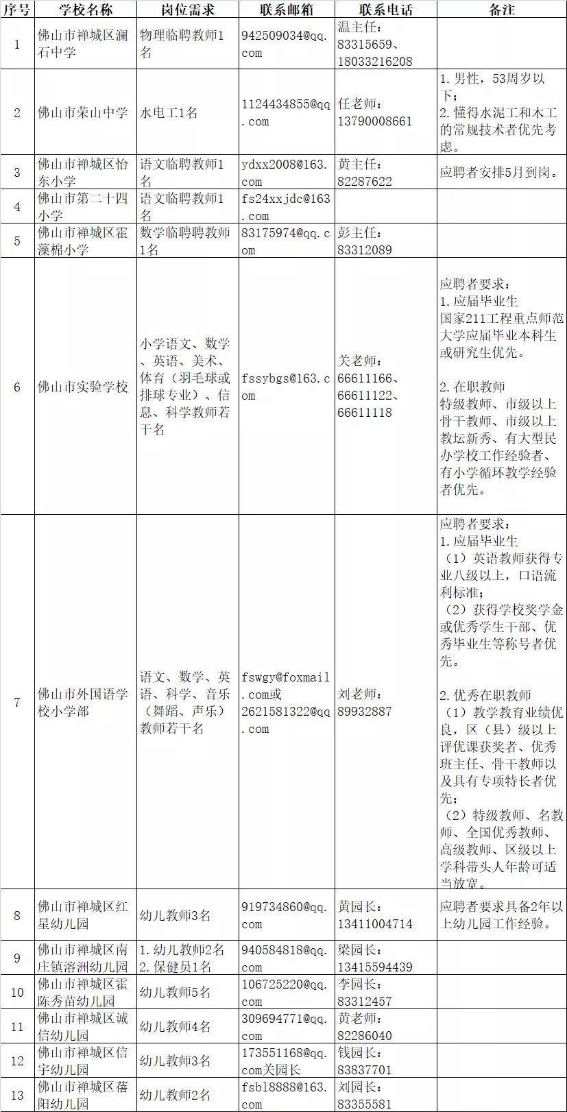 1.应聘公办学校临聘教师职位须具备禅城区教育局临聘教师入库人员资格;
