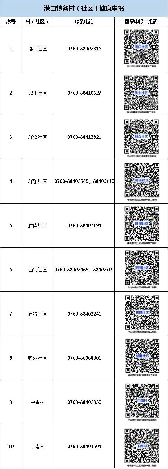 中山港口镇健康申报方式(电话+二维码)