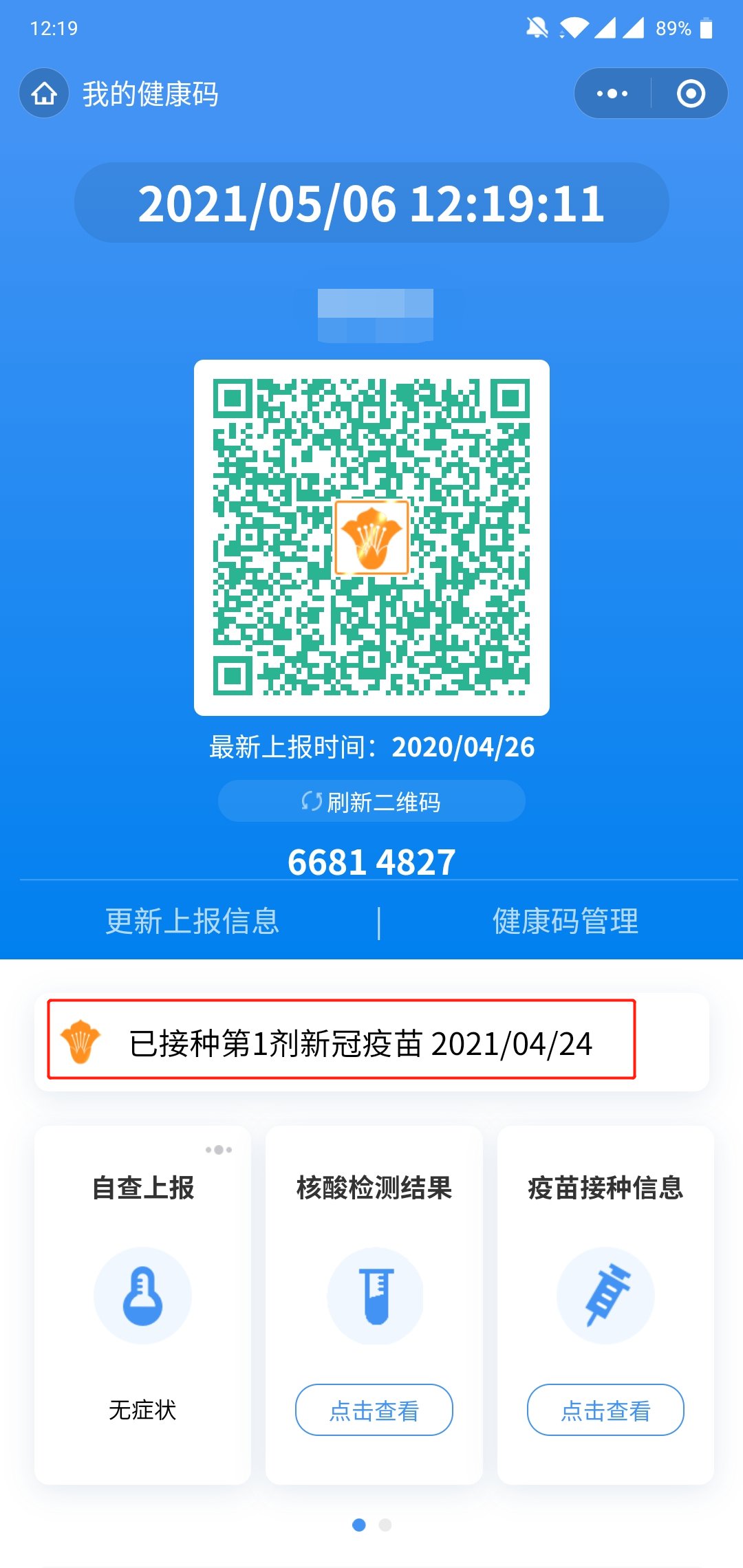 5月5日开始,广东省广州市对于已接种新冠疫苗的人群,其穗康码会显示一朵小木棉花。接种完第一剂新冠疫苗,穗康码中间将显示有一朵黄色的木棉花;接种完第二剂新冠疫苗,木棉花将由黄色转为红色。