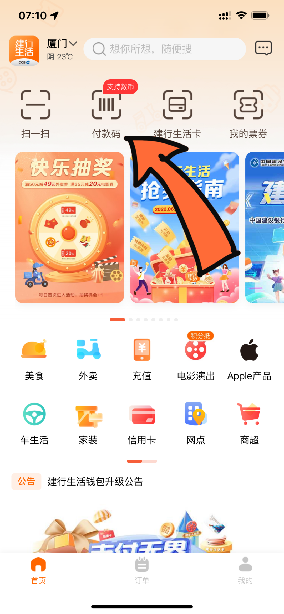 1.买单:在建行生活APP搜索到对应的商户门店,点击“买单”按钮进行支付。