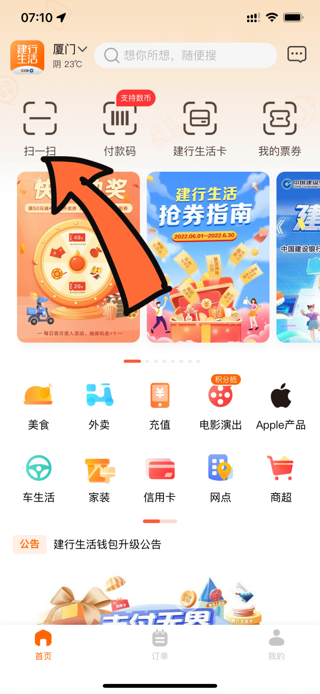 2.主扫方式:通过建行生活APP扫一扫数字人民币收款码牌支付(安踏、斐乐请用本方式支付)。