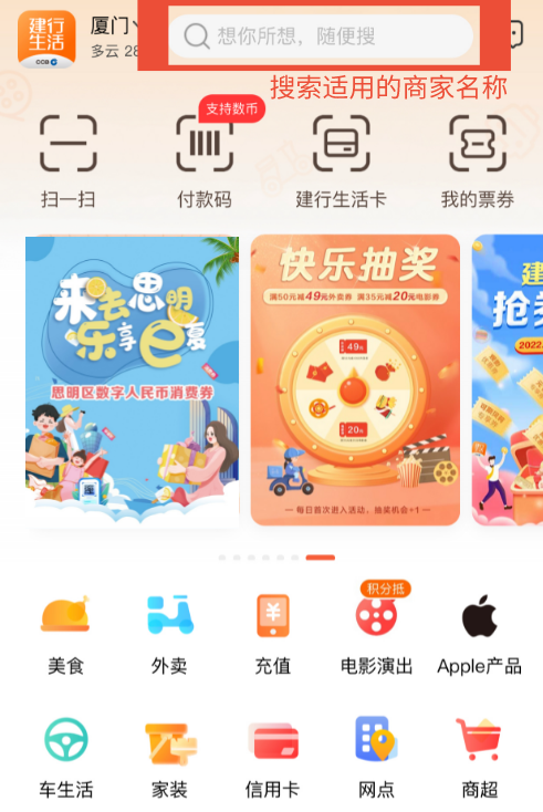 消费券可在适用商户到店消费时使用,支付方式为买单、扫一扫或付款码方式(具体以商家支持的收款方式为准),并且须选择建行数字人民币一类、二类钱包支付。