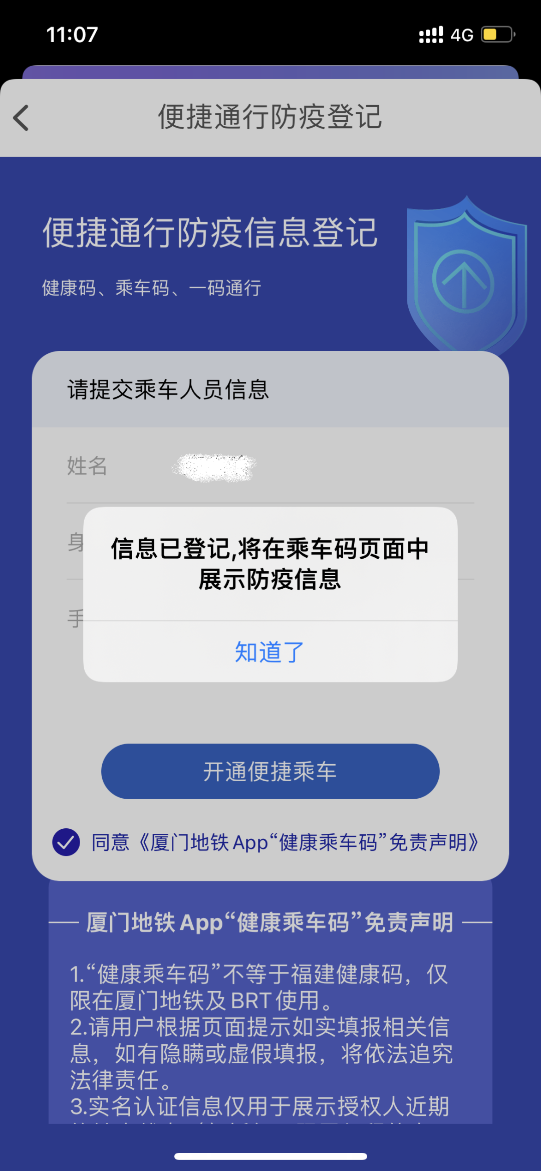 温馨提示:防疫健康信息仅需首次使用时授权实名登记,若您暂时不想授权实名登记,原乘车码也可照常使用!