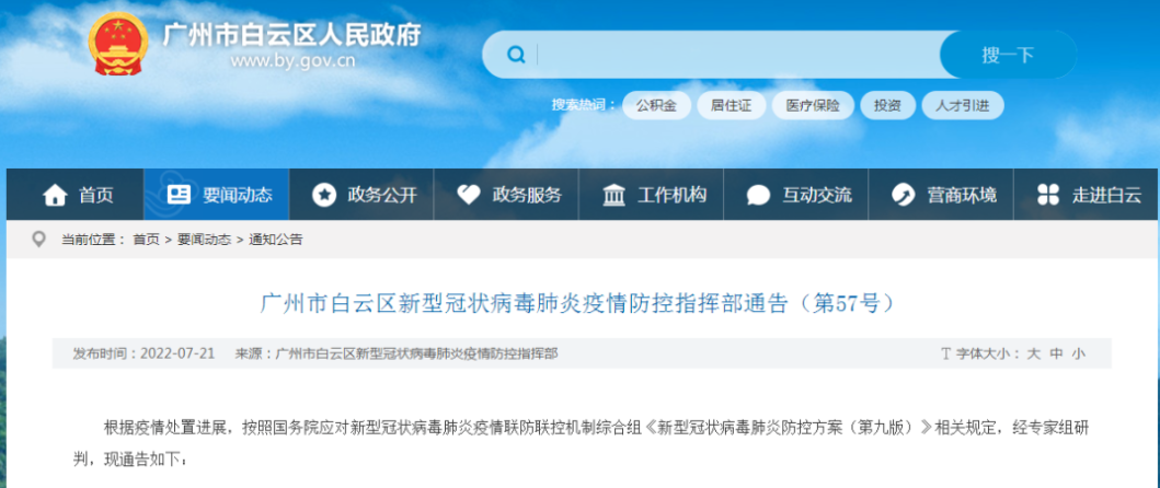 广州市白云区新型冠状病毒肺炎疫情防控指挥部通告(第57号)