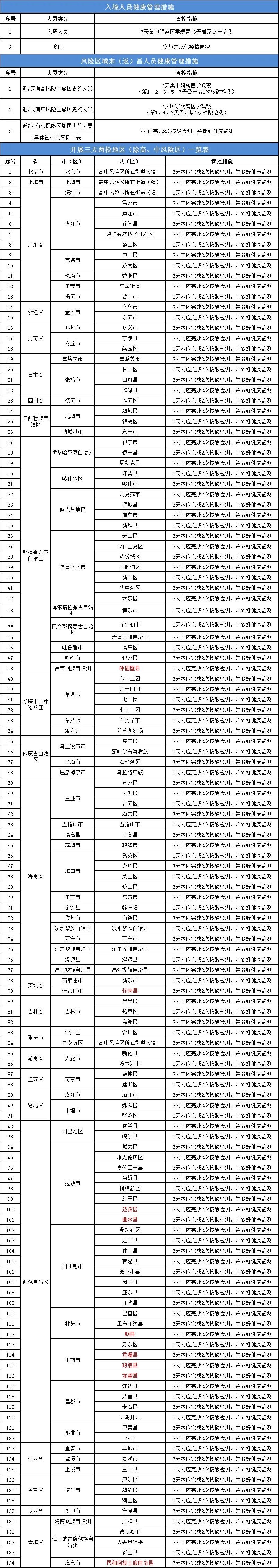 二、来自以下地区的来(返)昌人员严格按照《新型冠状病毒肺炎防控方案(第九版)》要求落实管控措施,指挥部另有要求的按指挥部要求执行。