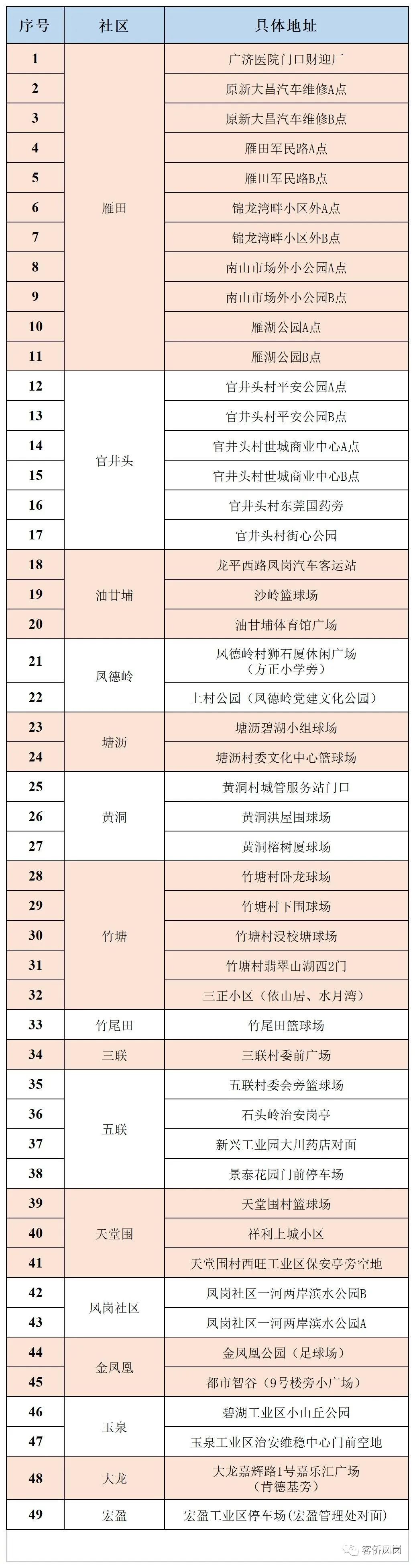 (五)有疫情发生地旅居史的人员,以及与通报病例活动轨迹有交集的人员,或者粤康码“红码”人员,请勿前往免费核酸检测点,“红码”人员由属地“三人小组”落实管控措施,“黄码”人员需到凤岗医院景泰花园采样点或广济医院财迎厂采样点黄码专用通道规范采样。中高风险地区来莞返莞人员按现行健康管理措施执行。