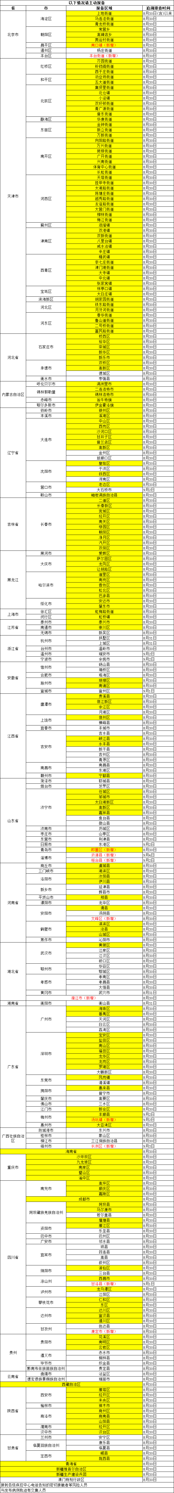 其余涉疫地区(见下表)入厦人员,入厦3天内完成两次核酸检测。