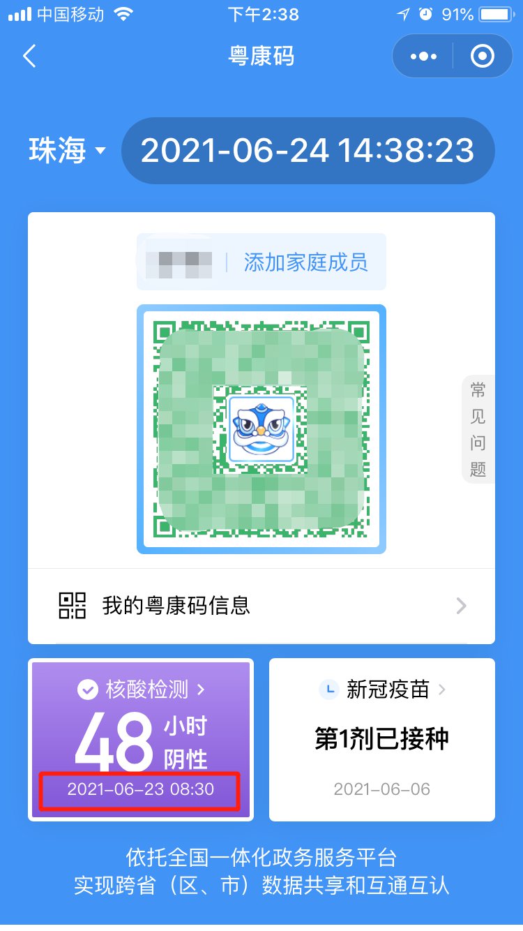 粤康码48小时阴性从什么时候开始算?