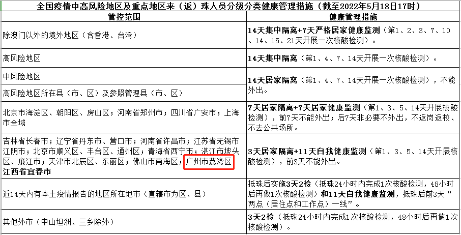 广州市荔湾区来(返)珠人员,尽快向所在社区、单位、酒店报备,落实3天居家隔离+11天自我健康监测,前3天不能外出。