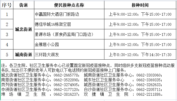 江城区5月17日新冠疫苗便民接种服务点安排如下: