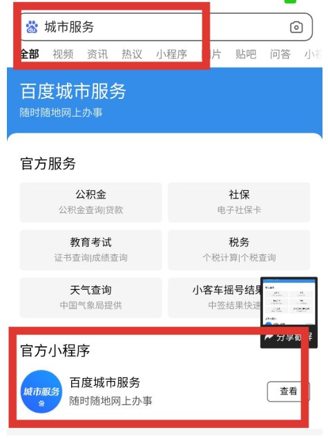 百度搜索『城市服务』小程序,点击进入后点击『教育服务』—『中小学教师资格证明查询』