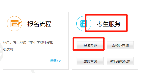 第一步:进入广东省教师资格证网上报名系统(http://ntce.neea.edu.cn/html1/folder/16013/15-1.htm),点击“中小学教师资格证考试报名”。选择“考生服务”—“报名系统”