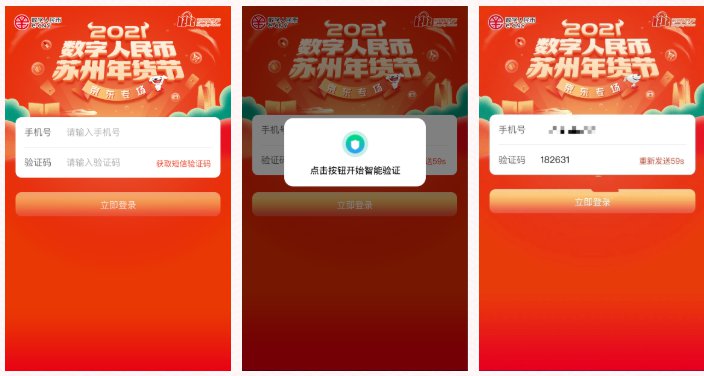 (3)用户进入“数字人民币苏州年货节京东专场”活动页面,填写用户手机号码,点击获取短信验证码,点击按钮进行智能验证后,收到短信,输入正确的短信验证码。