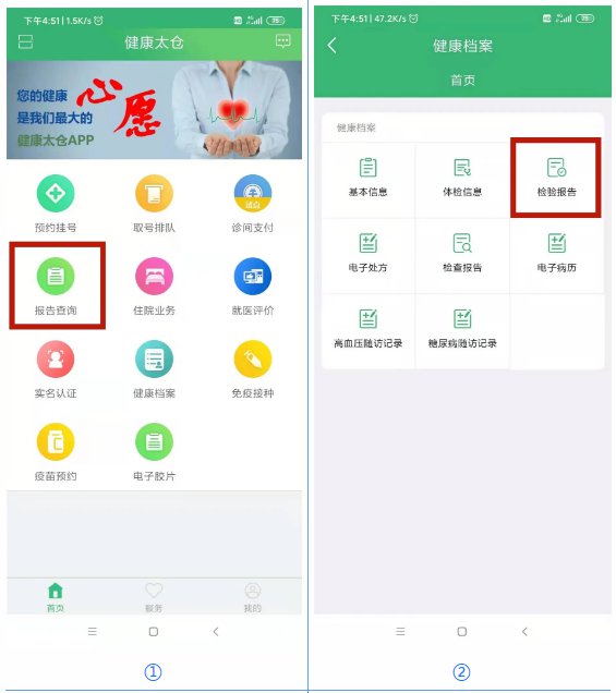 1.线上查询 通过“健康太仓”APP,可查看核酸检测报告。