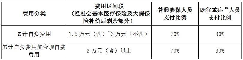 被保险人在保险期间内经苏州市社会基本医疗保险及大病保 险补偿后发生的自负费用,累计超过1.5万元低于3万元的剩余部分,苏惠保按比例支付;