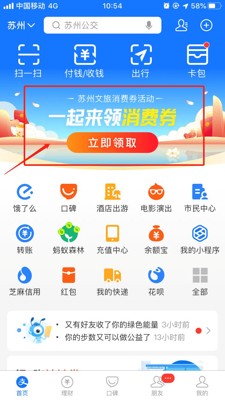 1、活动期间,用户可进入支付宝首页“苏州文旅消费券”入口领取消费券。