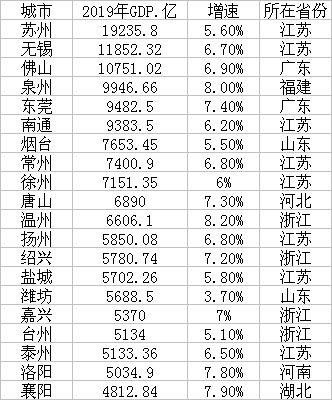 2019年普通地级市GDP20强名单: