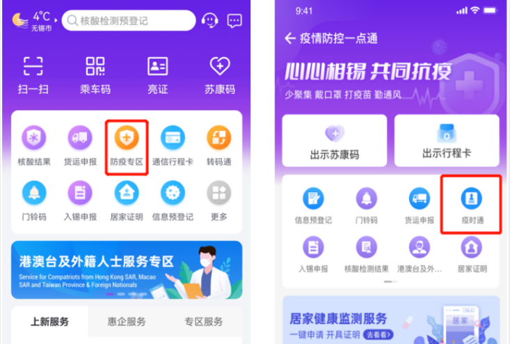 1、首页点击【防疫专区】—【疫时通】或者首页搜索栏输入【疫时通】。