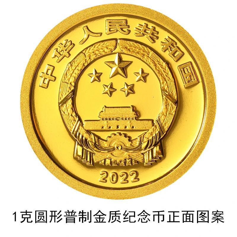 该套金银纪念币正面图案均为中华人民共和国国徽,并刊国名、年号“2022”。